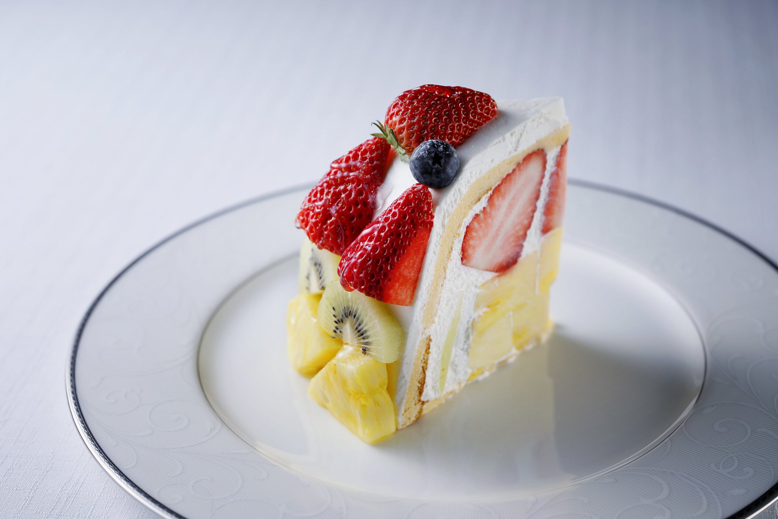 イチゴやモンブランなど、旬の果物をたっぷりと使った「ズコット ケーキ」。しっとりとしたスポンジに甘さ控えめのクリーム、フル ーツの自然な味わいが調和した海の舎の名物ケーキです。