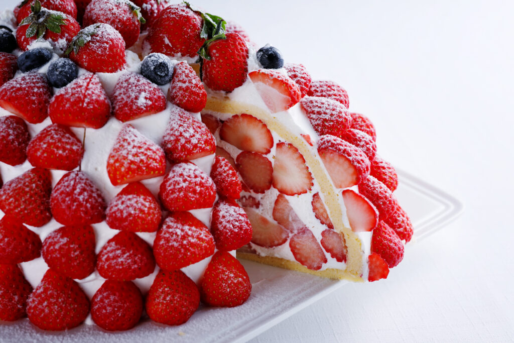 イチゴやモンブランなど、 旬の果物をたっぷりと使った 「ズコットケーキ」。 しっとりとしたスポンジに 甘さ控えめのクリーム、 フルーツの自然な味わいが 調和した海の舎の名物ケーキです。